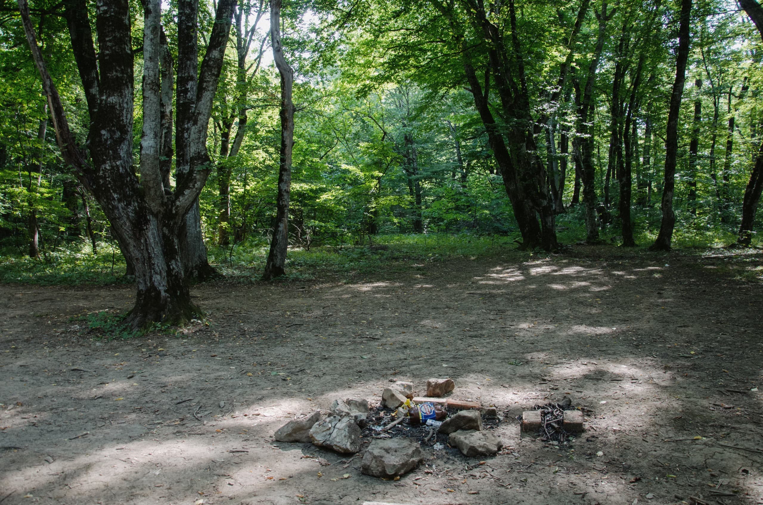 Щеголяющий шикарным асфальтом серпантин петлял в живописном лесу до Кутаиса. Дорога была столь уютна и приятна, что хотелось ехать как можно медленнее, чтобы дольше ей наслаждаться. Но вот мы въехали в Кутаис. Он произвёл хорошее впечатление. Милый, симпатичный посёлок. Но Кутаис невелик, закончился быстро, а вместе с ним осталась за спиной хорошая дорога. Дальше тоже хотелось ехать как можно медленнее, но совсем по другой причине. Под колёсами побежал зубодробительный грейдер. Крупные камни, куча выбоин. Этот участок уже к скорости в тридцать норовил вытрясти всю душу из нас и все болты из машины.