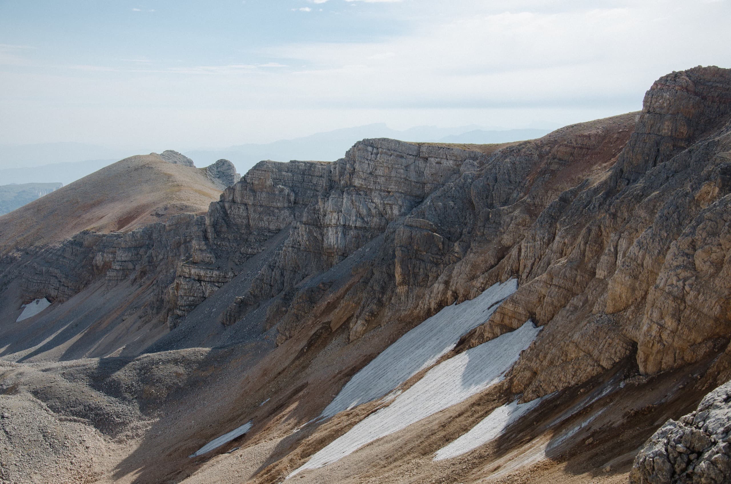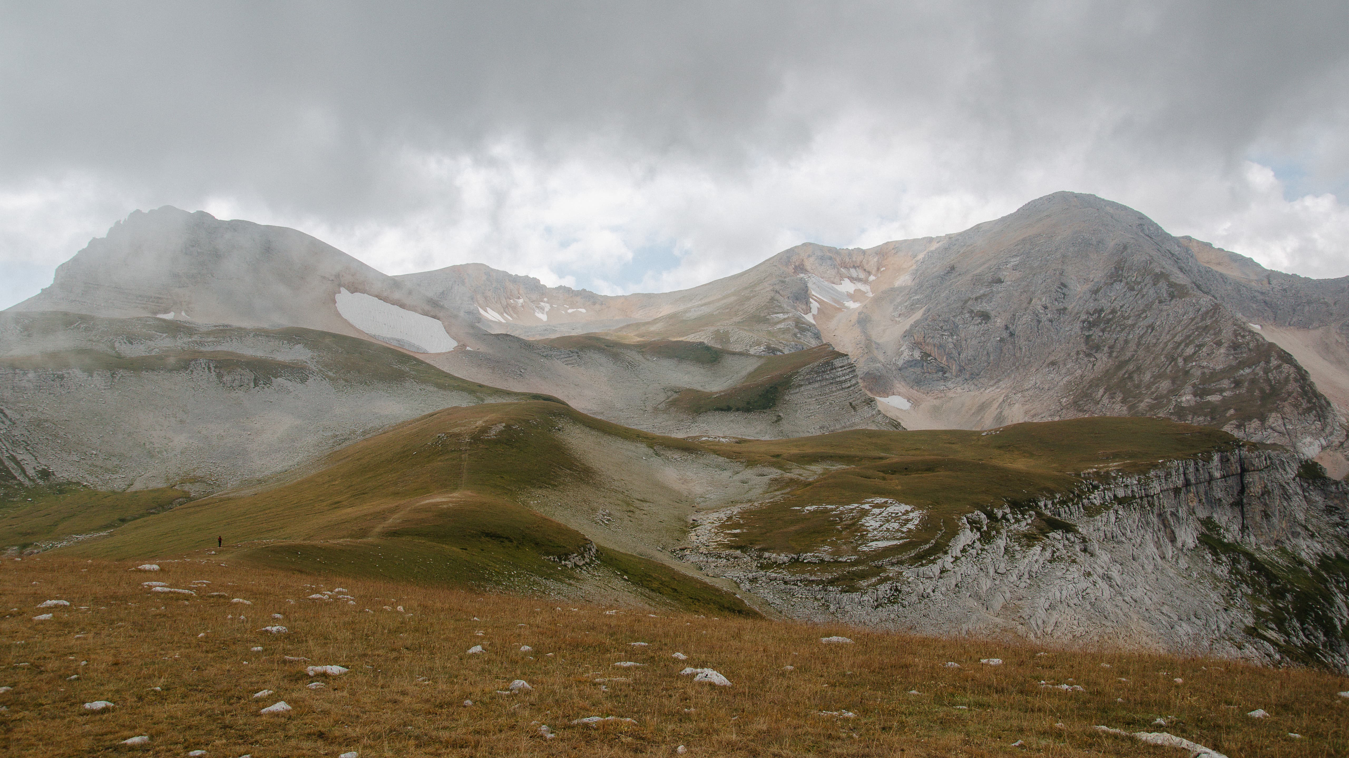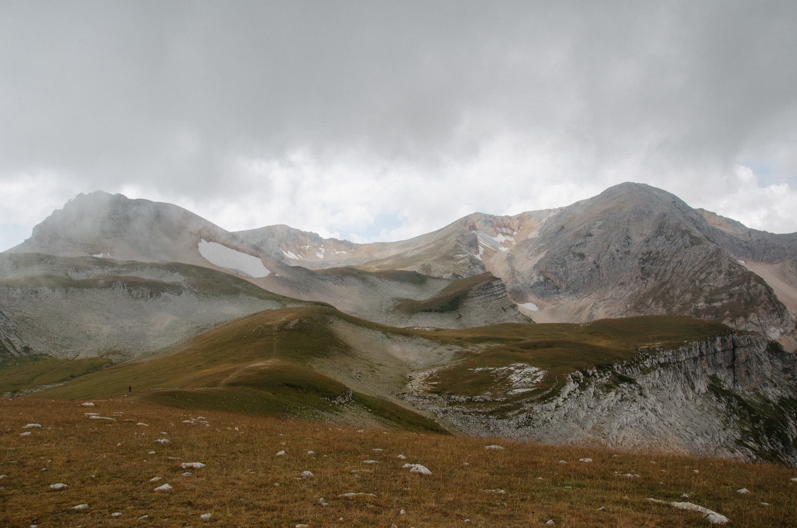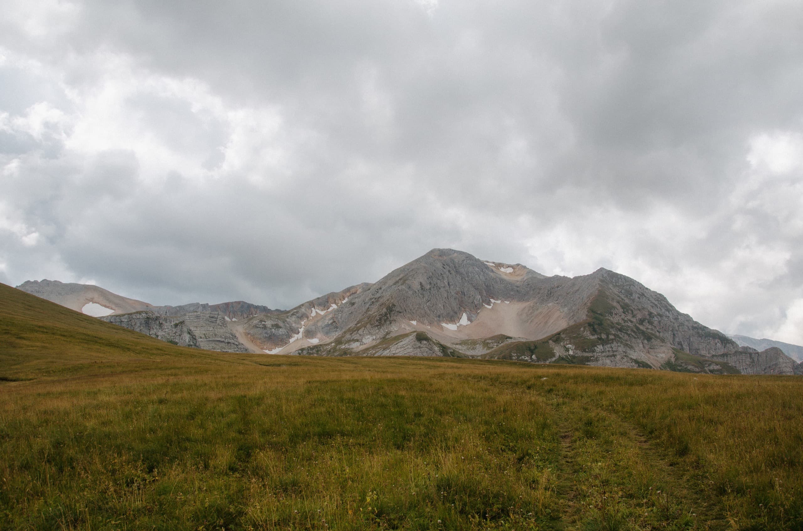 Окружающие нас склоны выглядели полем боя, на котором буро-зелёные травяные поля боролись с безжизненными каменными россыпями. На более пологих участках трава брала верх и вытесняла камень. Там, где покруче, порода брала верх, ощетиниваясь скальными зубами и обширными моренами.