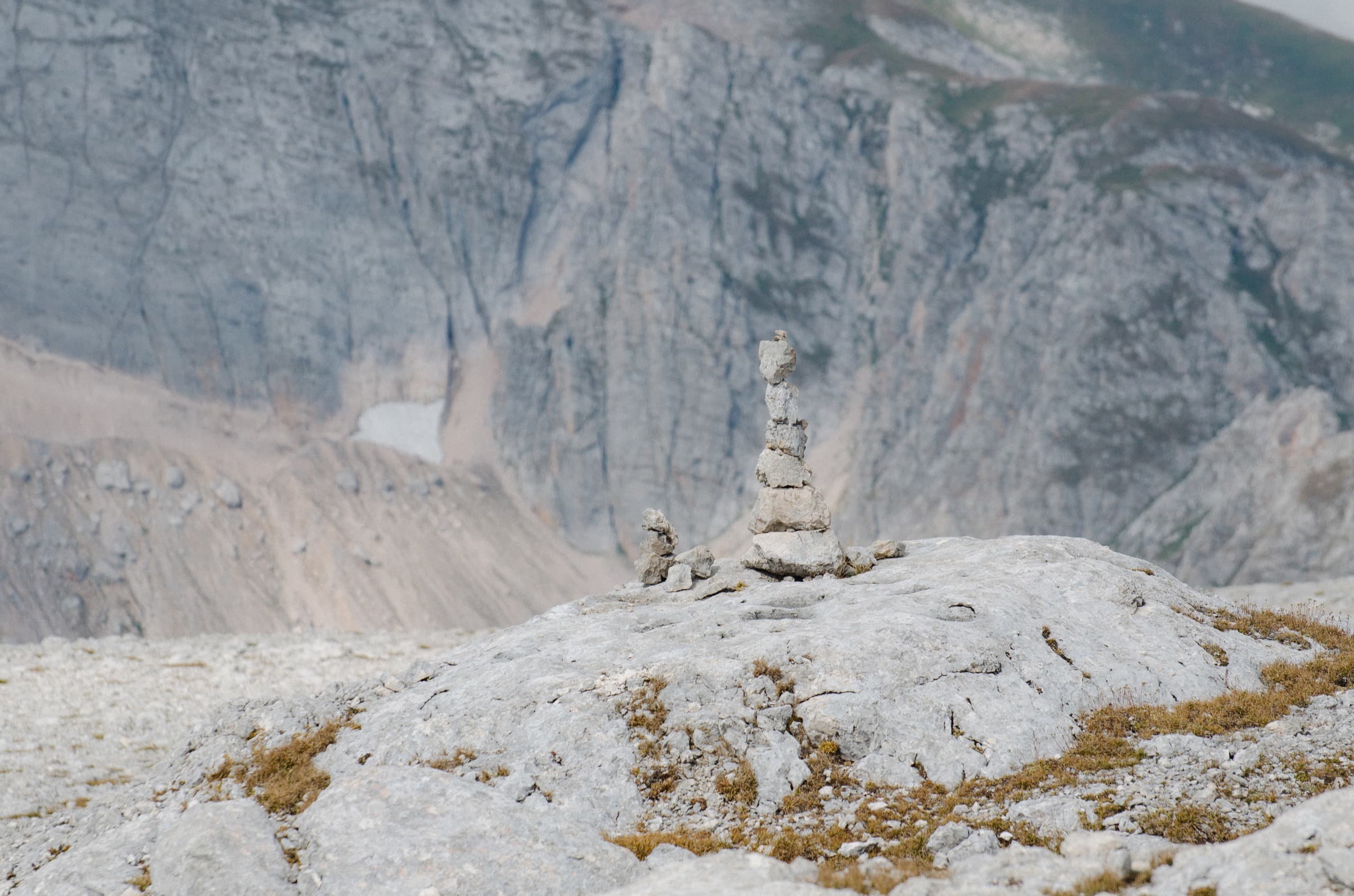 Вершина Оштена как площадь, огромная куполообразная поляна, засыпанная камнями, сможет вместить сколько угодно людей. На самом её верху расположился тур, который обозначает ту самую отметку 2804 метра.