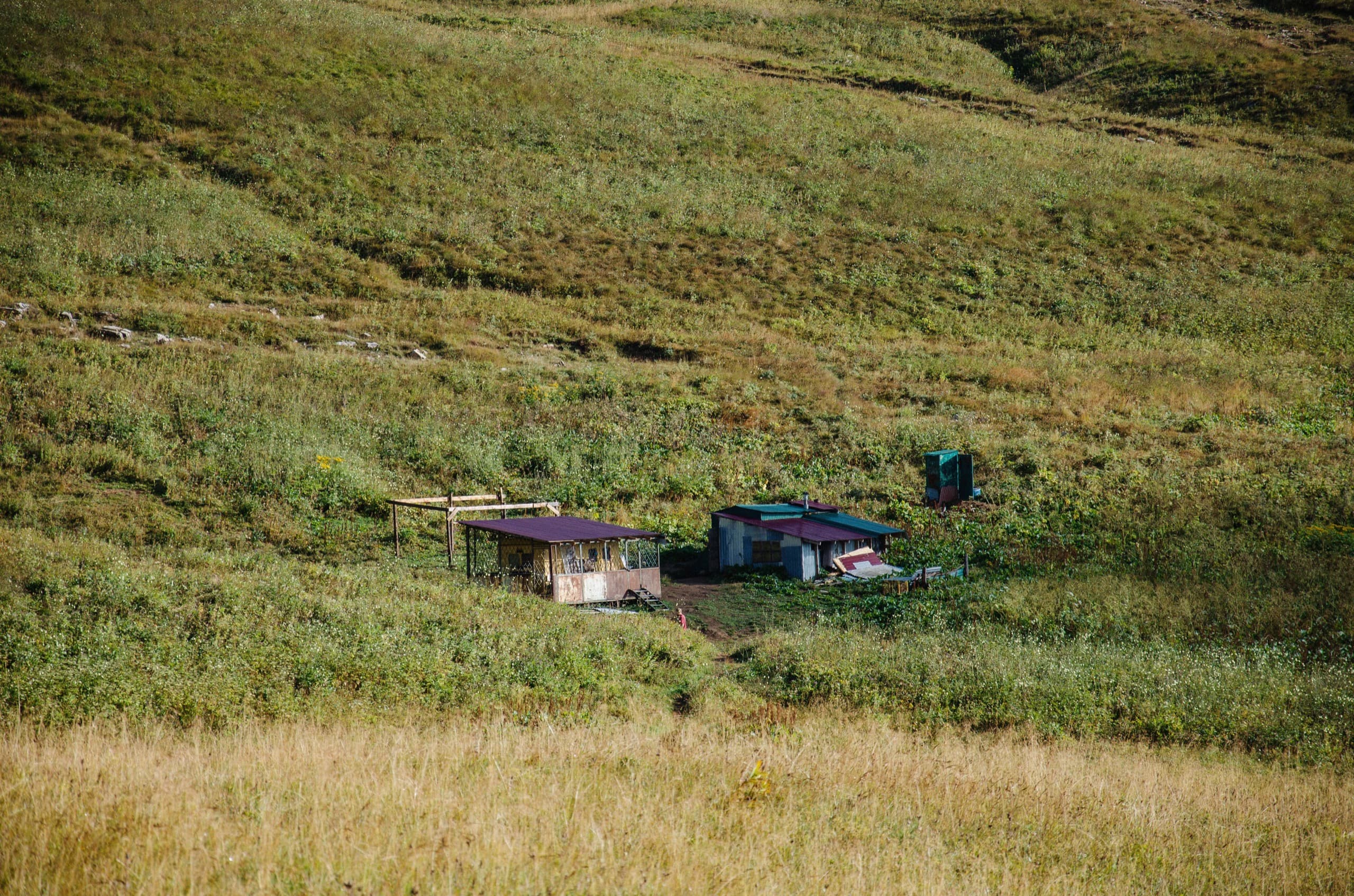 Поход близился к концу. Спустя пятнадцать минут ходьбы мы уже вышли к реке Армянке и пастушьему кошу, в котором провели несколько ночей в июне. За два месяца отсутствия пастухи рядом поставили новый кош, и в нём уже закрыли решётками окна и двери. Вот так и теряют туристы места ночёвок по вине редких уродов, бьющих окна ради забавы.