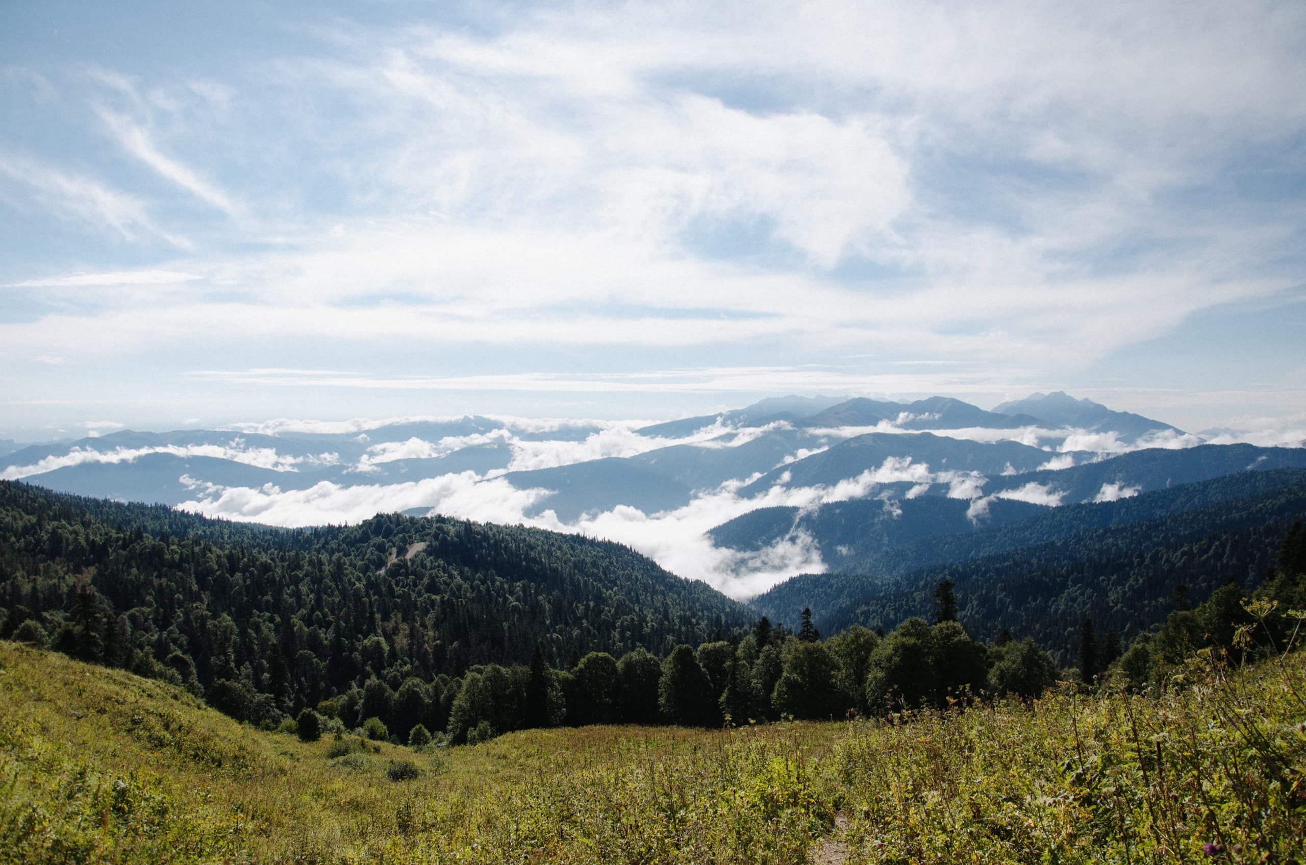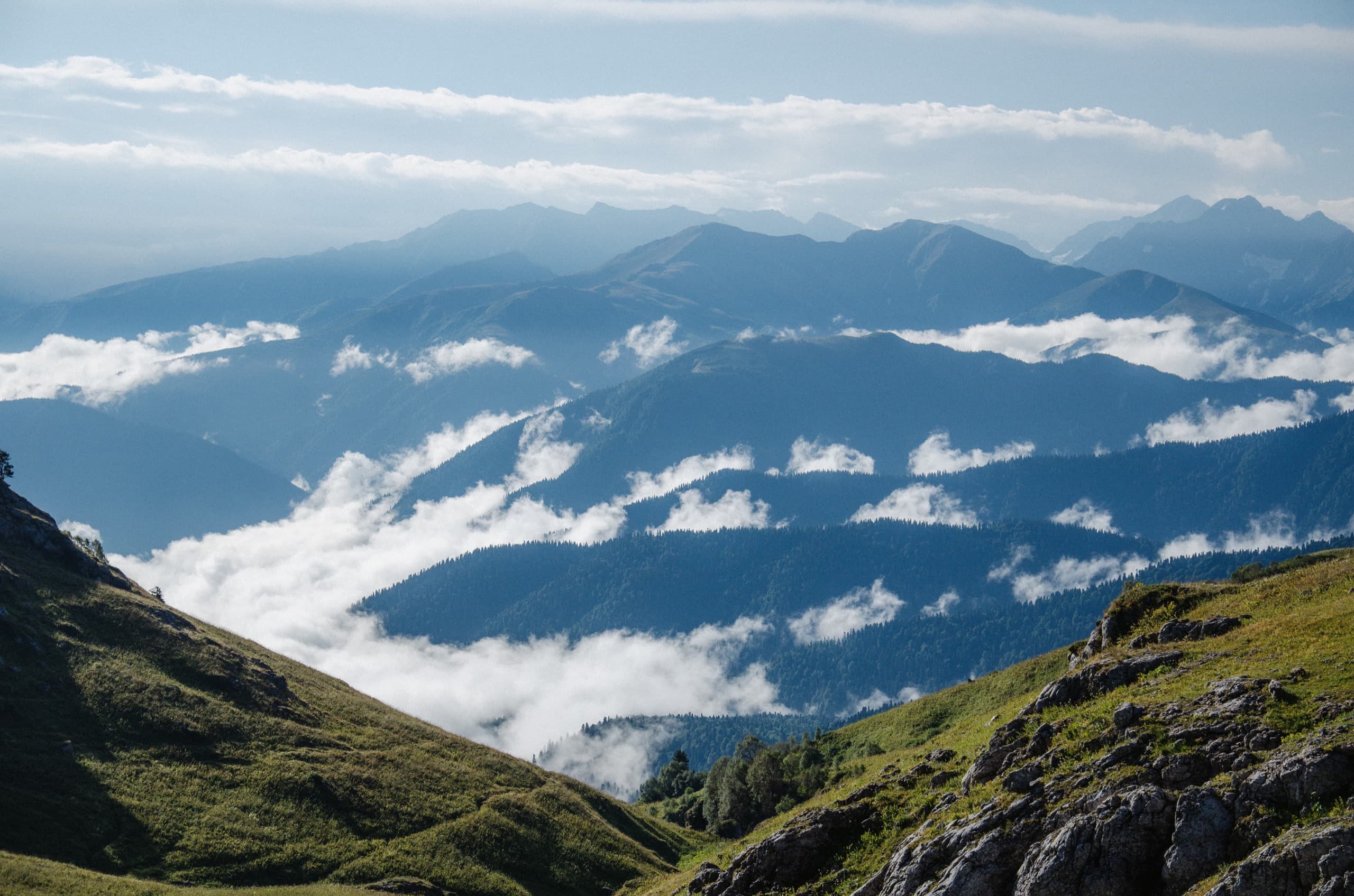 На часах было десять утра. От Фишта начали набегать белоснежные клубки туч, сигнализируя нам о возможной скорой непогоде. В какой-то момент они заволокли всё вокруг, но потом одумались, подняли и побежали дальше.