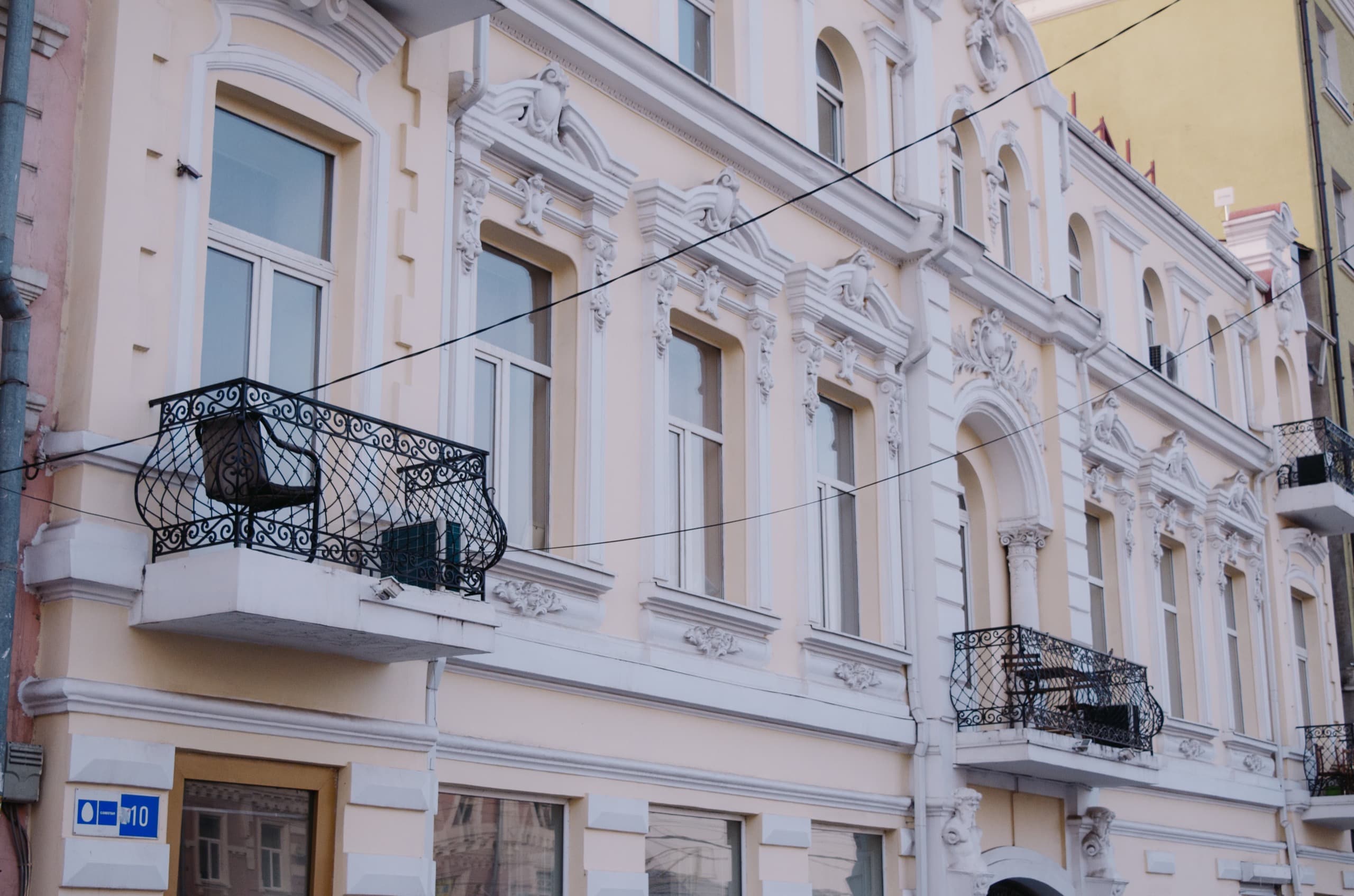 Красоту можно было выхватывать фрагментами. Вот, например, достаточно хорошее здание. Хотя всё равно хоть что-то в кадр да проберётся — тут вон «комстаровская» табличка торчит в углу.
