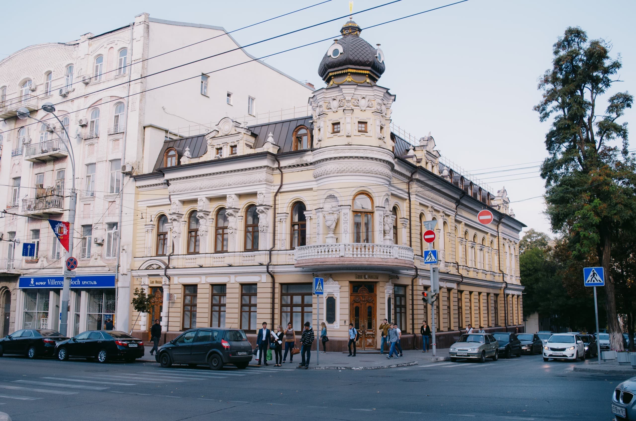 В центре Ростова столько красивых старых зданий, но многие из них были испоганены рекламой, сплит-системами, колхозными «улучшениями» и пристройками. На следующем фото ещё достаточно приличный образец, который по ростовским меркам совсем чуть-чуть попортили.