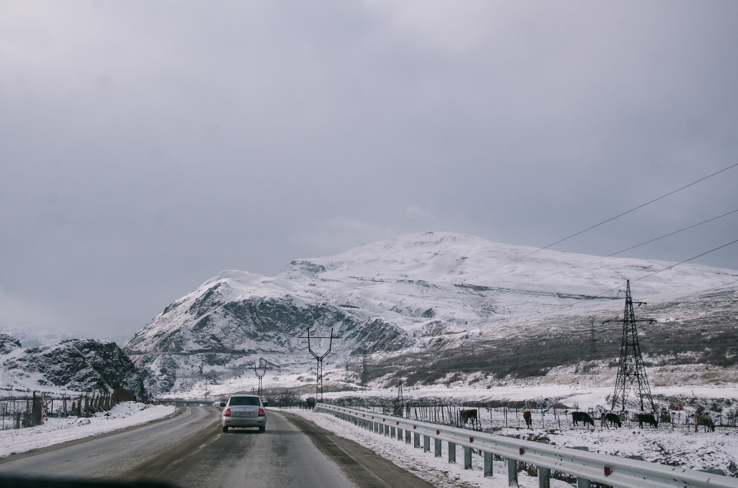 Пару слов о дороге. Тот Новый год выдался снежным и морозным, вокруг воцарилась настоящая зимняя сказка. На термометре −19, заснеженные поля, в станицах над дорогой висел полог морозного тумана. С рассветом выехали на трассу «Кавказ», где-то в полях под Армавиром термометр опустился до −26. Стало не по себе, когда встретили по пути мужика на мотоцикле с коляской.