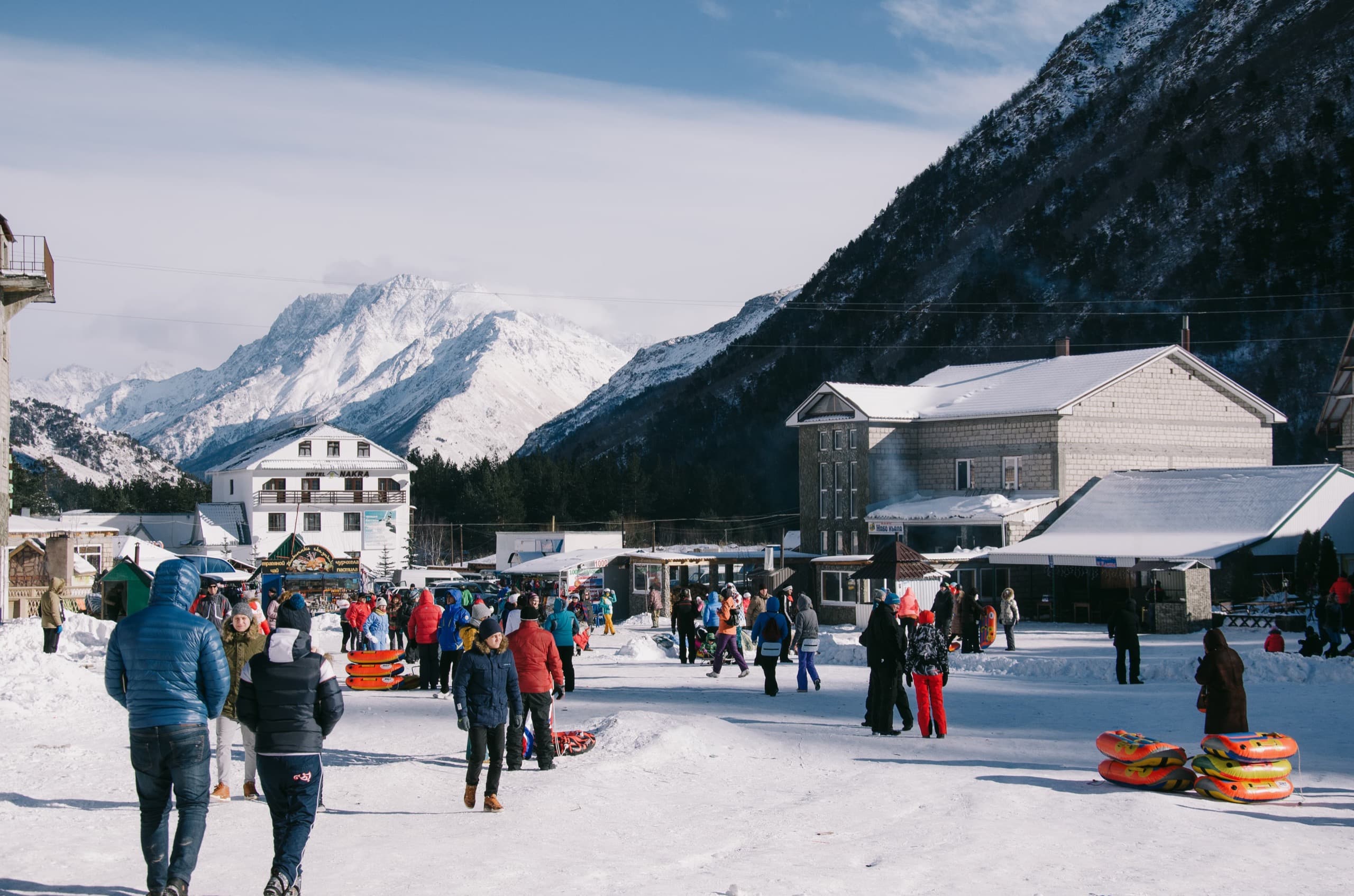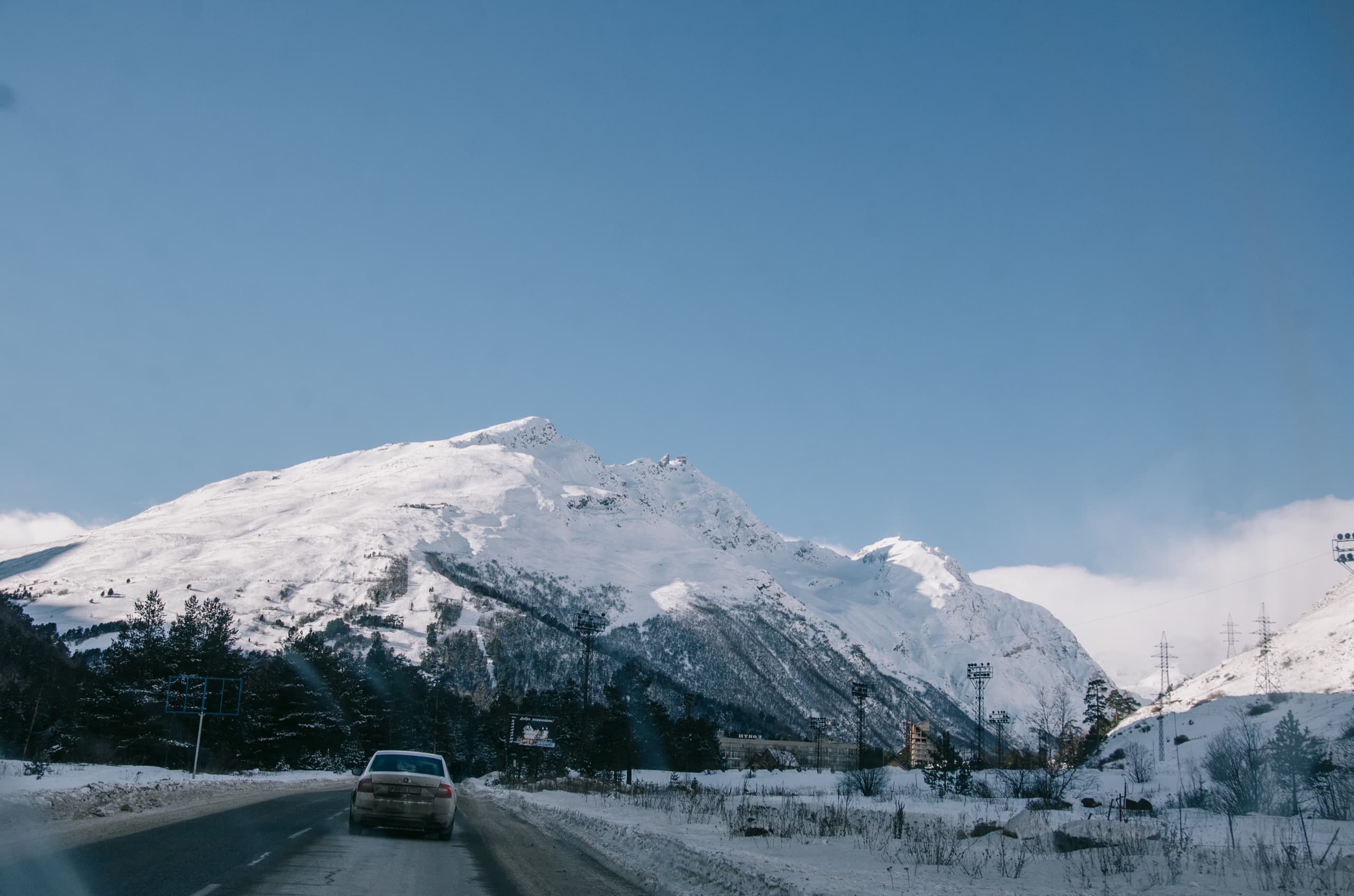К обеду добрались до цели — курортного посёлка Поляна Чегет.