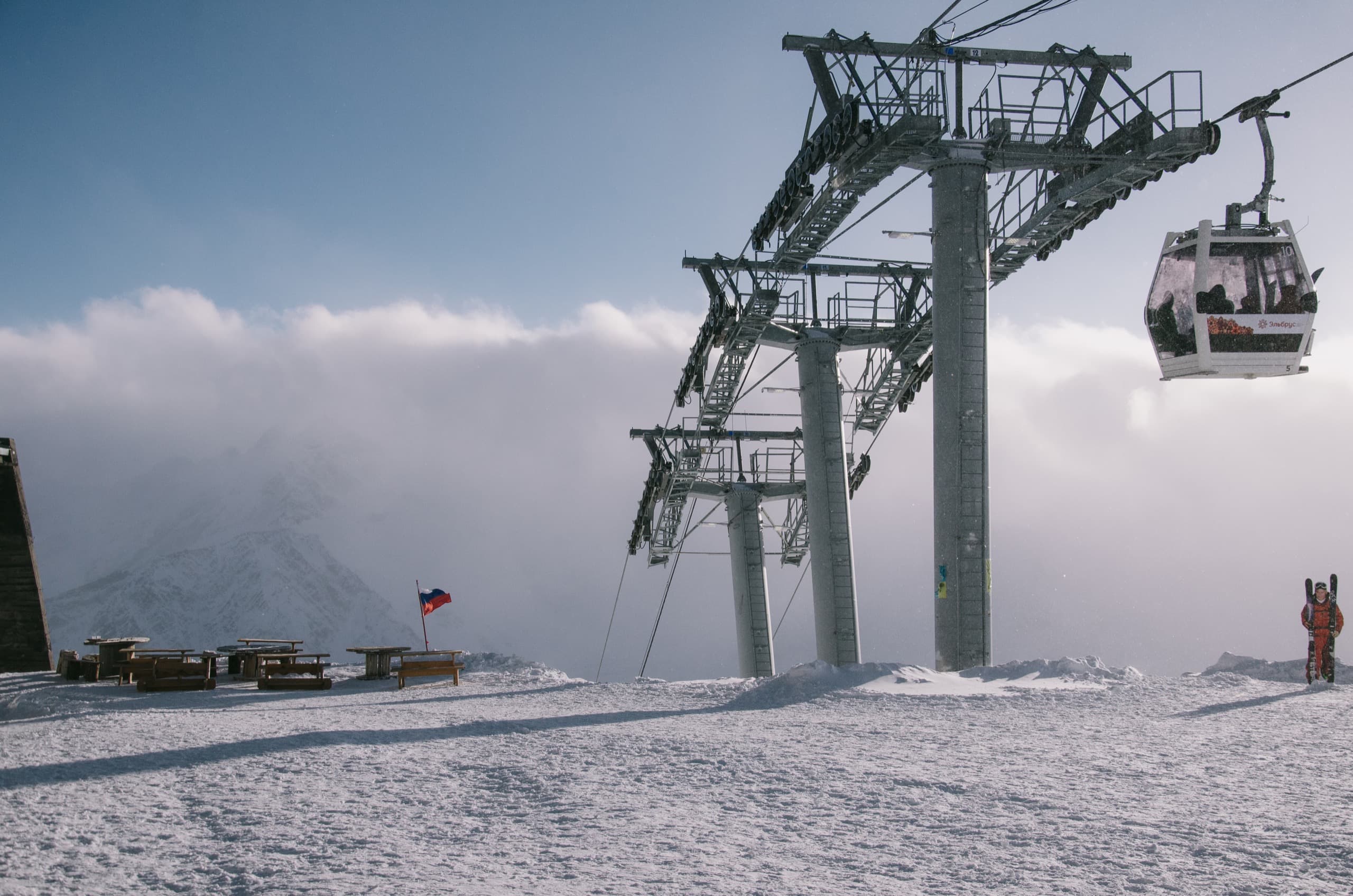После Мира есть станция Гарабаши и Приют 11 на отметке в 4050 метров — высшая точка на Эльбрусе куда можно доехать только на снегоходах. Дальше суровое высокогорье.