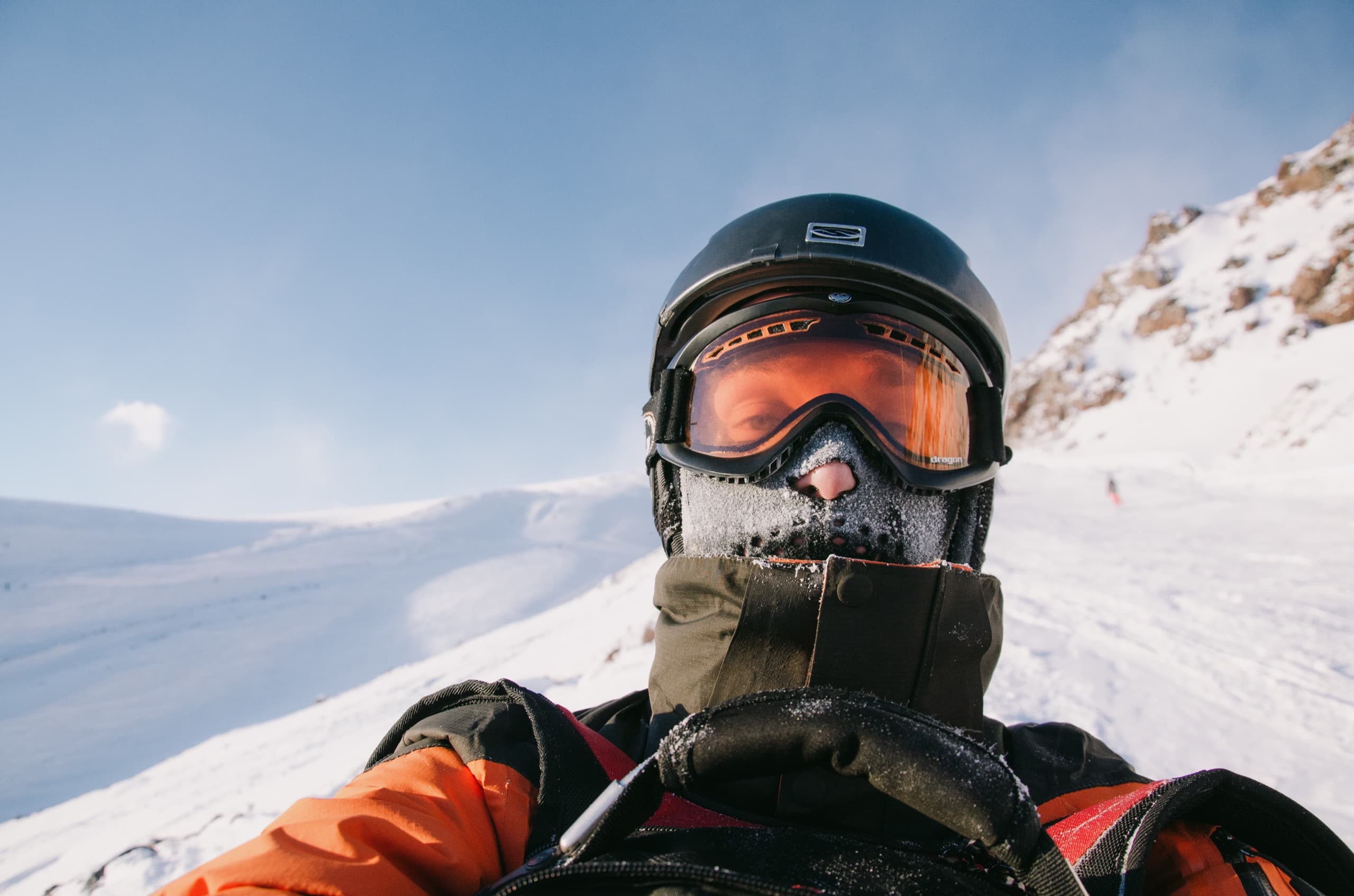 А мороз был крепкий — градусов тридцать по термометру и боюсь даже представлять, сколько там можно было насчитать с учётом силы ветра. На нас были перчатки, утеплённые каски, балаклавы и лыжные маски. Стоило открыть любой кусочек тела, как тот обмерзал в считаные секунды, вот что значит приехали теплолюбивые.