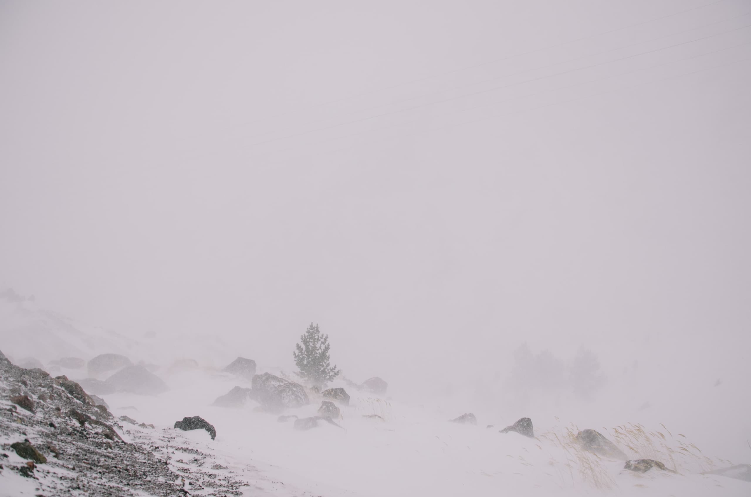 На следующий день небо плотно заволокло тучами, пошёл сильный снег. Мы отоспались, хорошенько покушали и снова помчали на гору, несмотря на испортившуюся погоду.