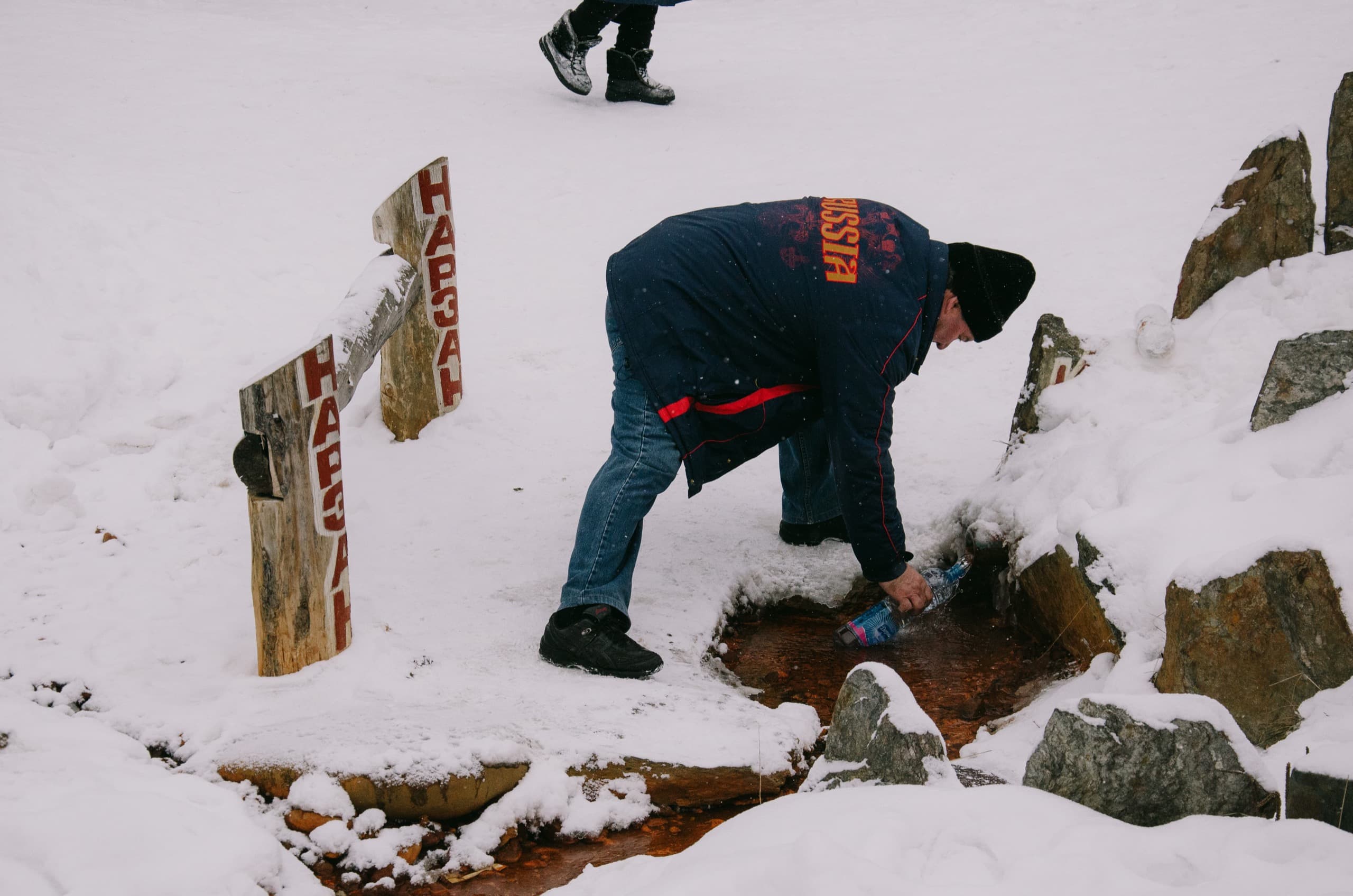 Ну а дальше был финиш на поляне Азау. Из-за непогоды второй раз подниматься не стали, слили ски-пассы, сдали снарягу и домой. Только сделали небольшую остановку на поляне Нарзанов. Это место, где прямо из-под земли бьёт минеральная вода. Там же множество кафешек и лавок с сувенирами, шерстяными изделиями, травами и настойками.