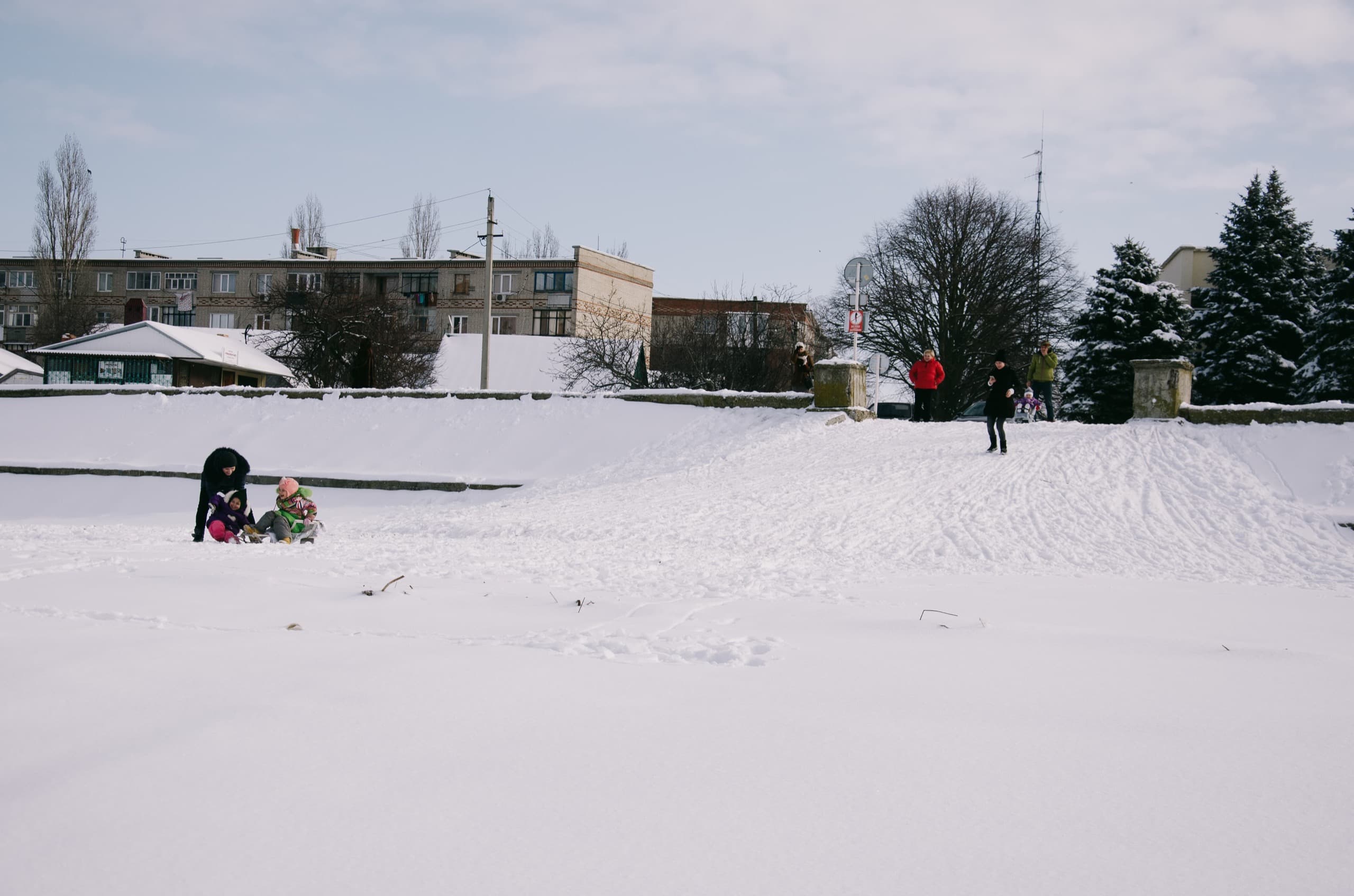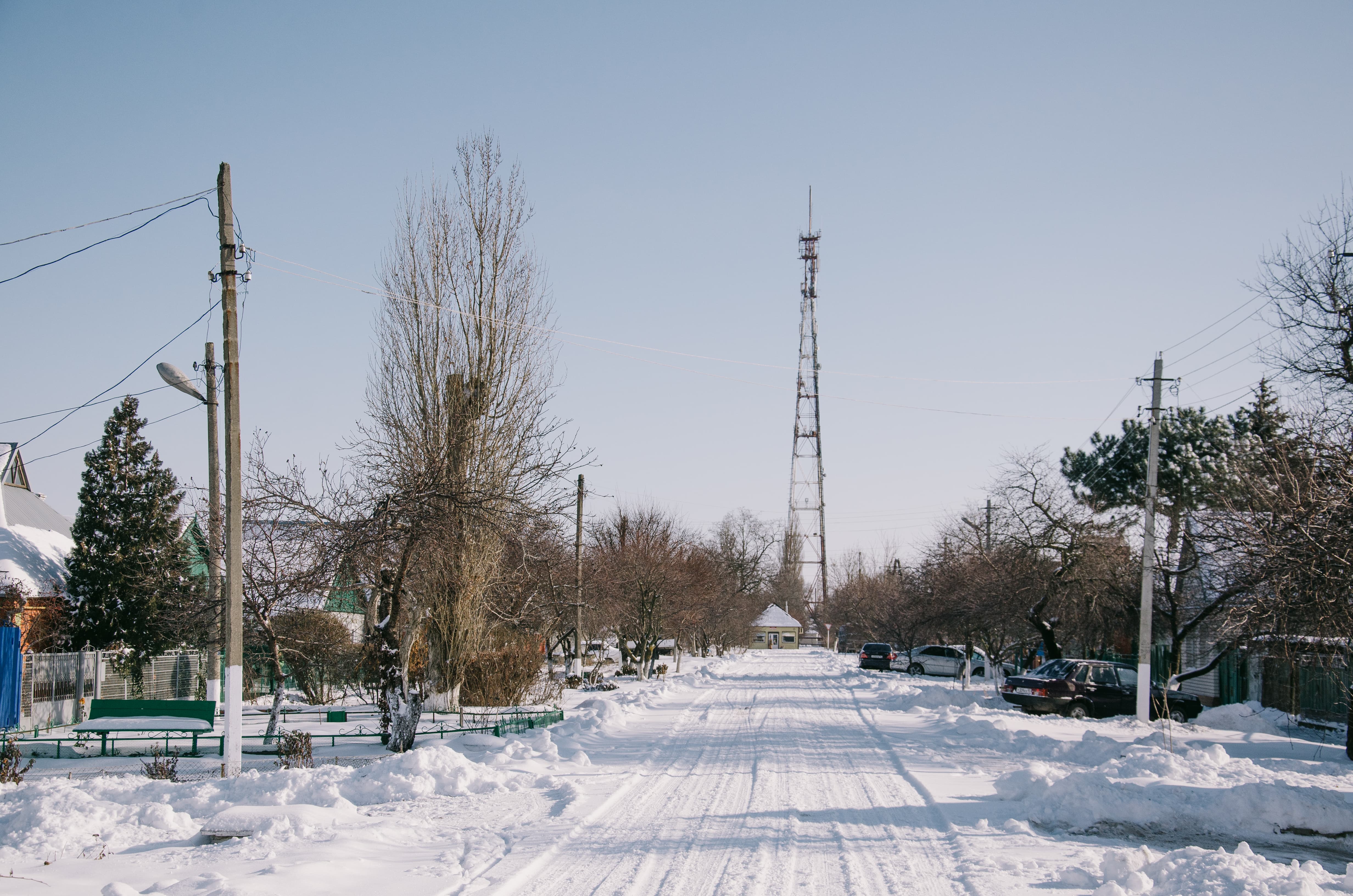 И заснеженная улица 4-Ахтарского полка, венчаемая стометровой телевышкой.