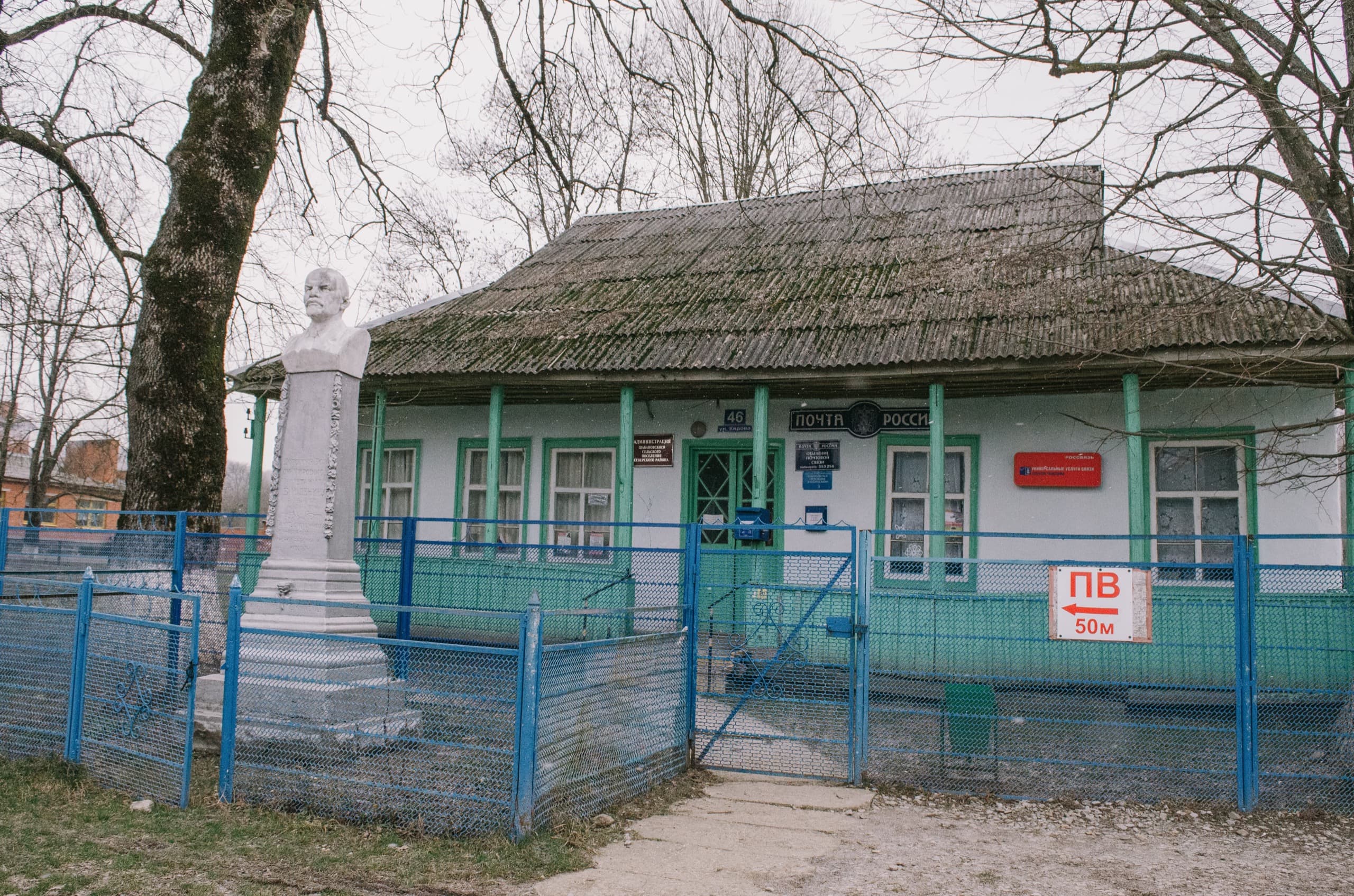 Чуть дальше по центральной улице Кирова нашёлся ещё симпатичный домик, который занимало почтовое отделение. Тот уже был в хорошем состоянии. Только бошка Ленина перед ним весь вид портила.