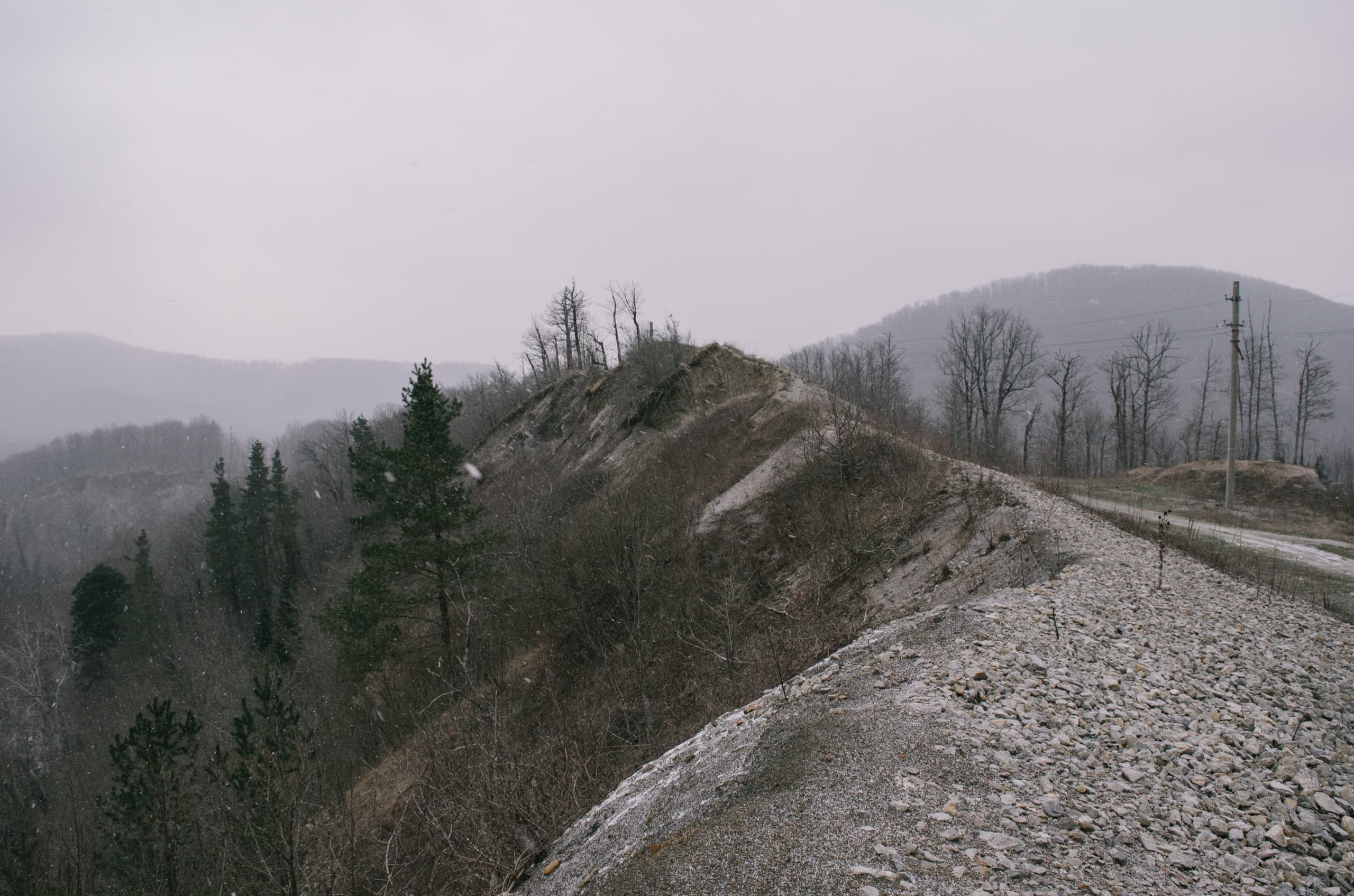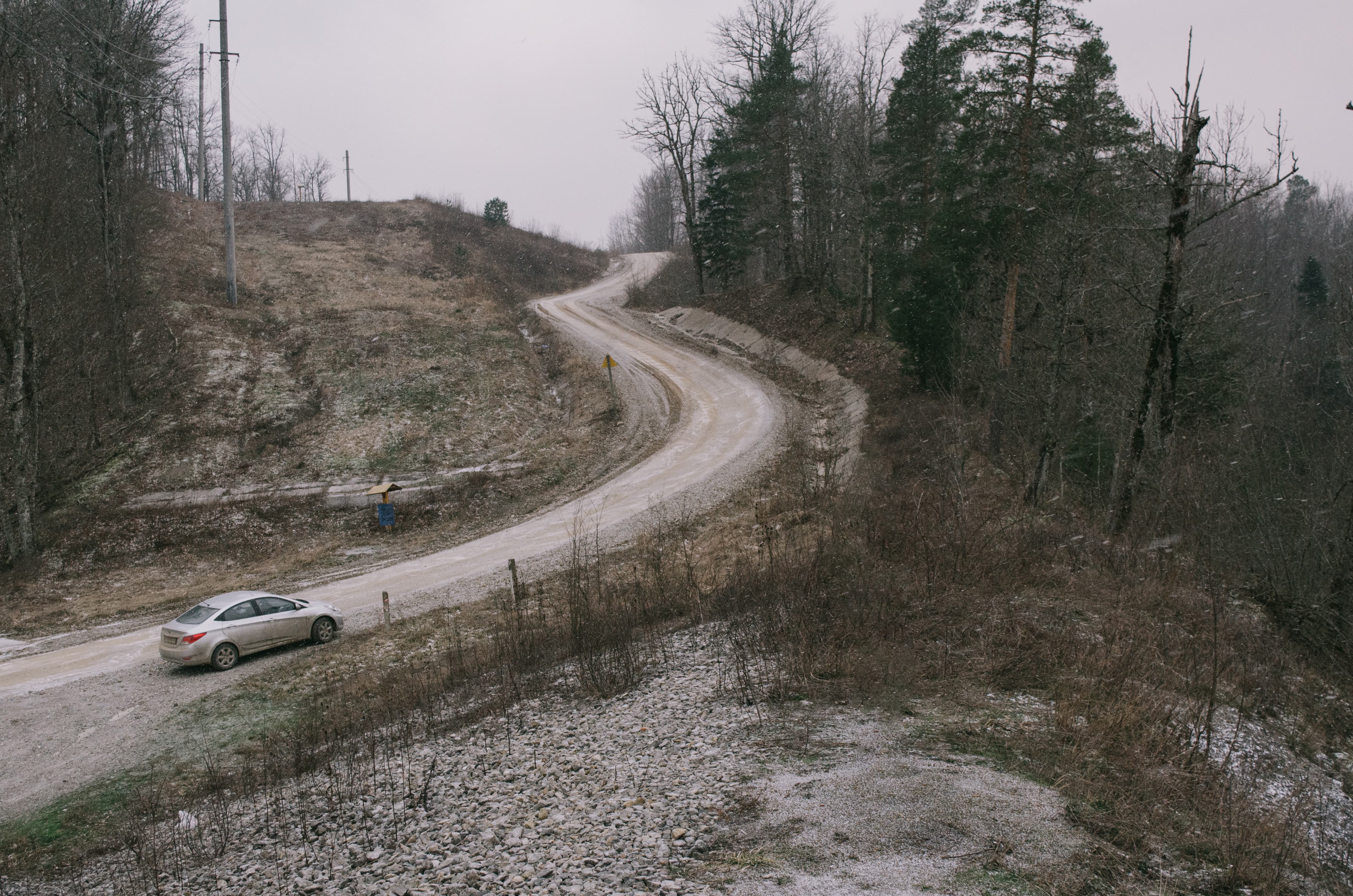 Дорога та дикая и интересная. Грейдированный серпантин, километры крутых подъёмов и захватывающих спусков. Никаких ограждений, минимум знаков. Поросшие лесом склоны вокруг и крутые обрывы у самых колёс.